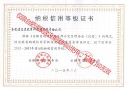 安徽省國家稅務(wù)局2012-2013納稅信用等級證書