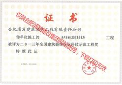 2013池州九華全國建筑裝飾行業(yè)科技示范工程獎(jiǎng)